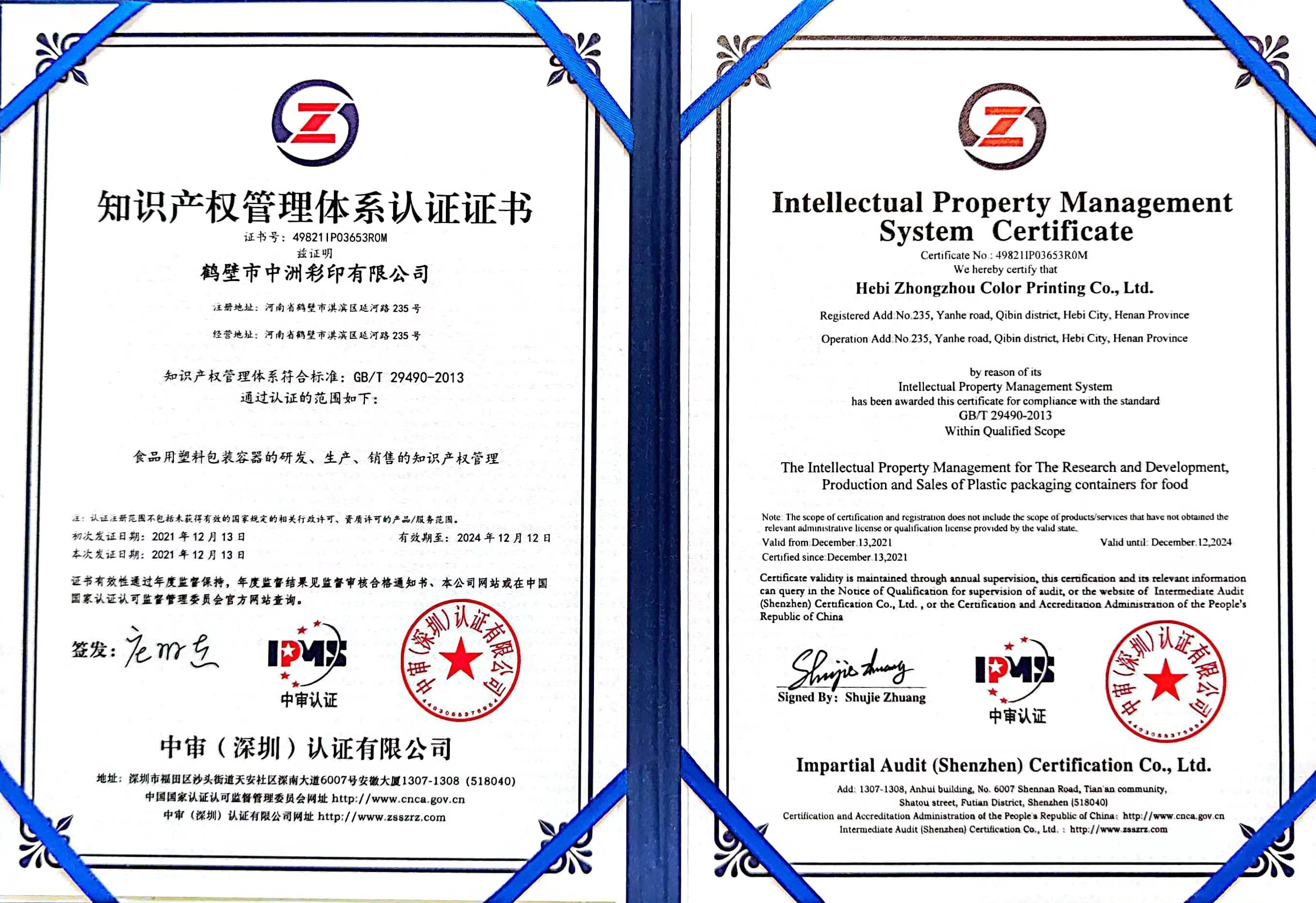 質(zhì)量管理體系認(rèn)證證書